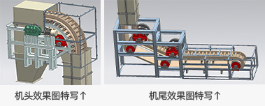 其结构与普通大倾角皮带输送机类似,主要由波状挡边输送带、驱动装置、传动滚筒、改向滚筒、压带轮、托辊等组成。波状挡边、横隔板和基带形成了输送物料的“闸”形容器,从而实现垂直输送。